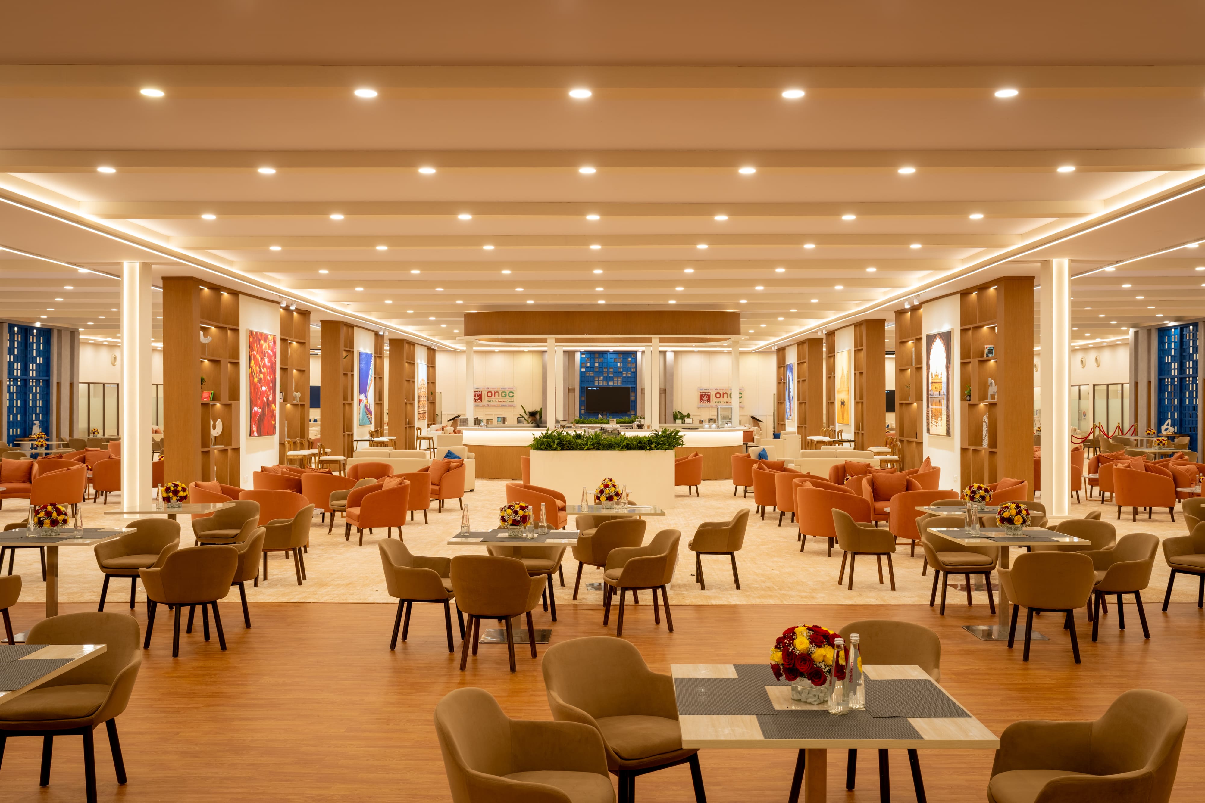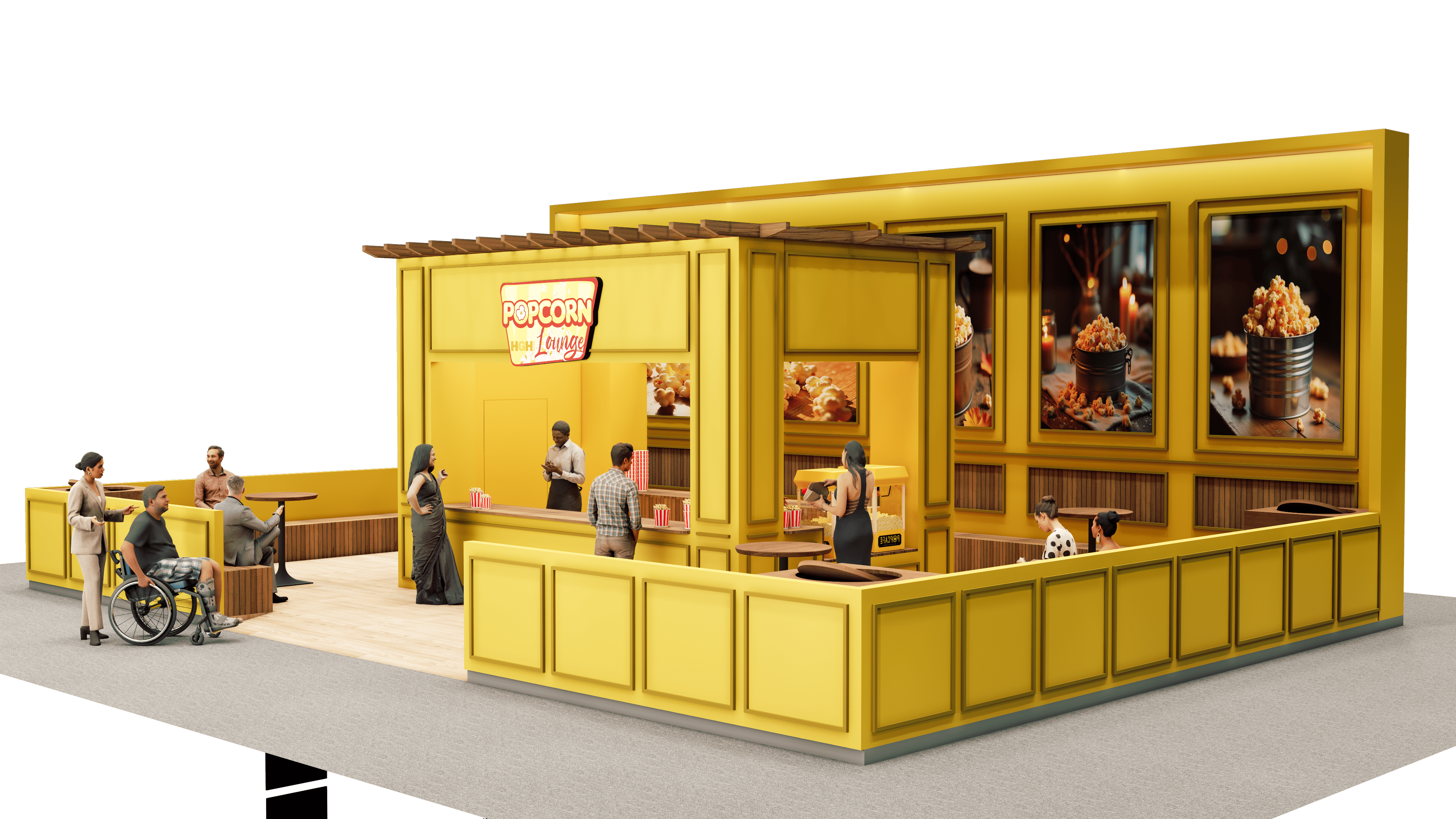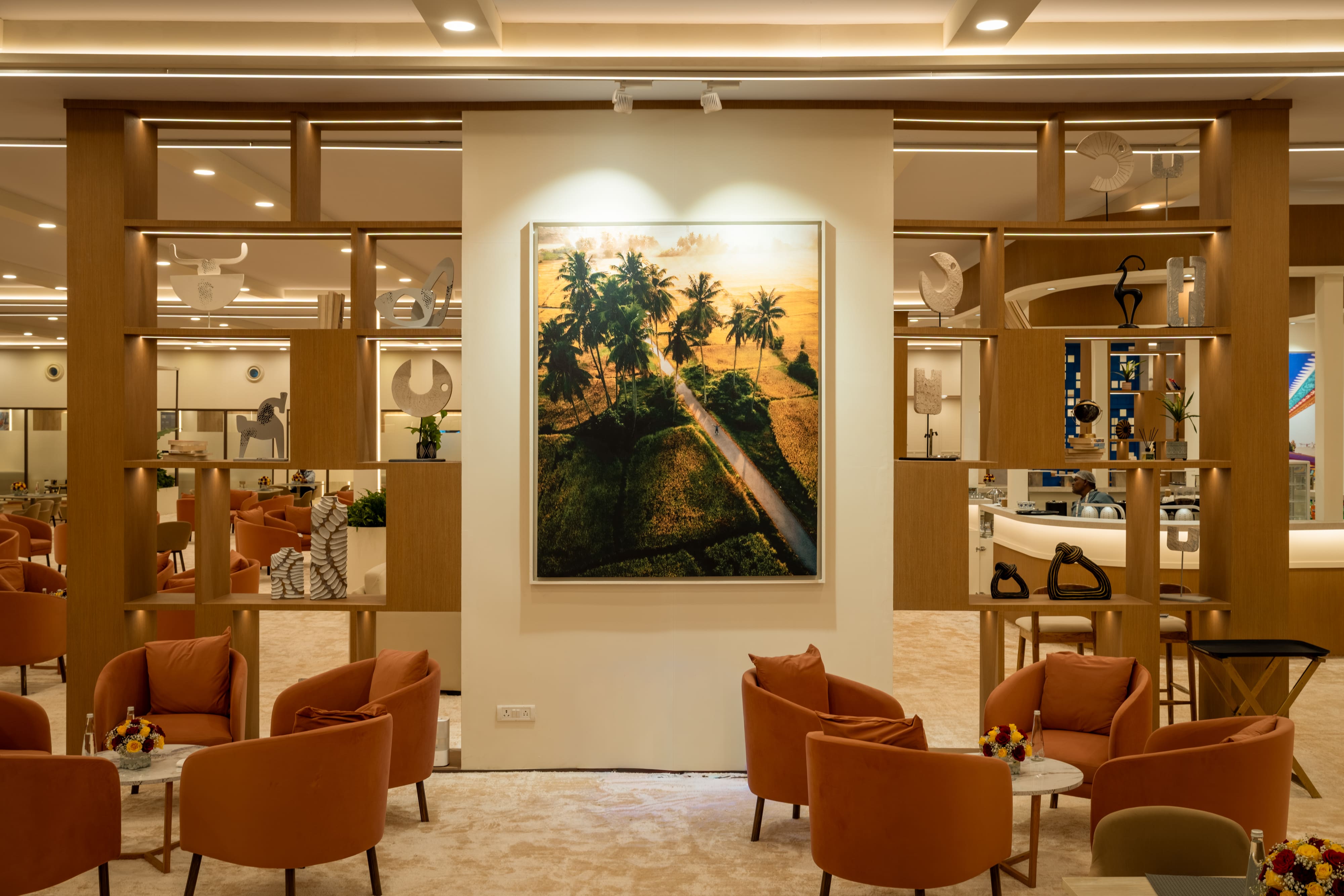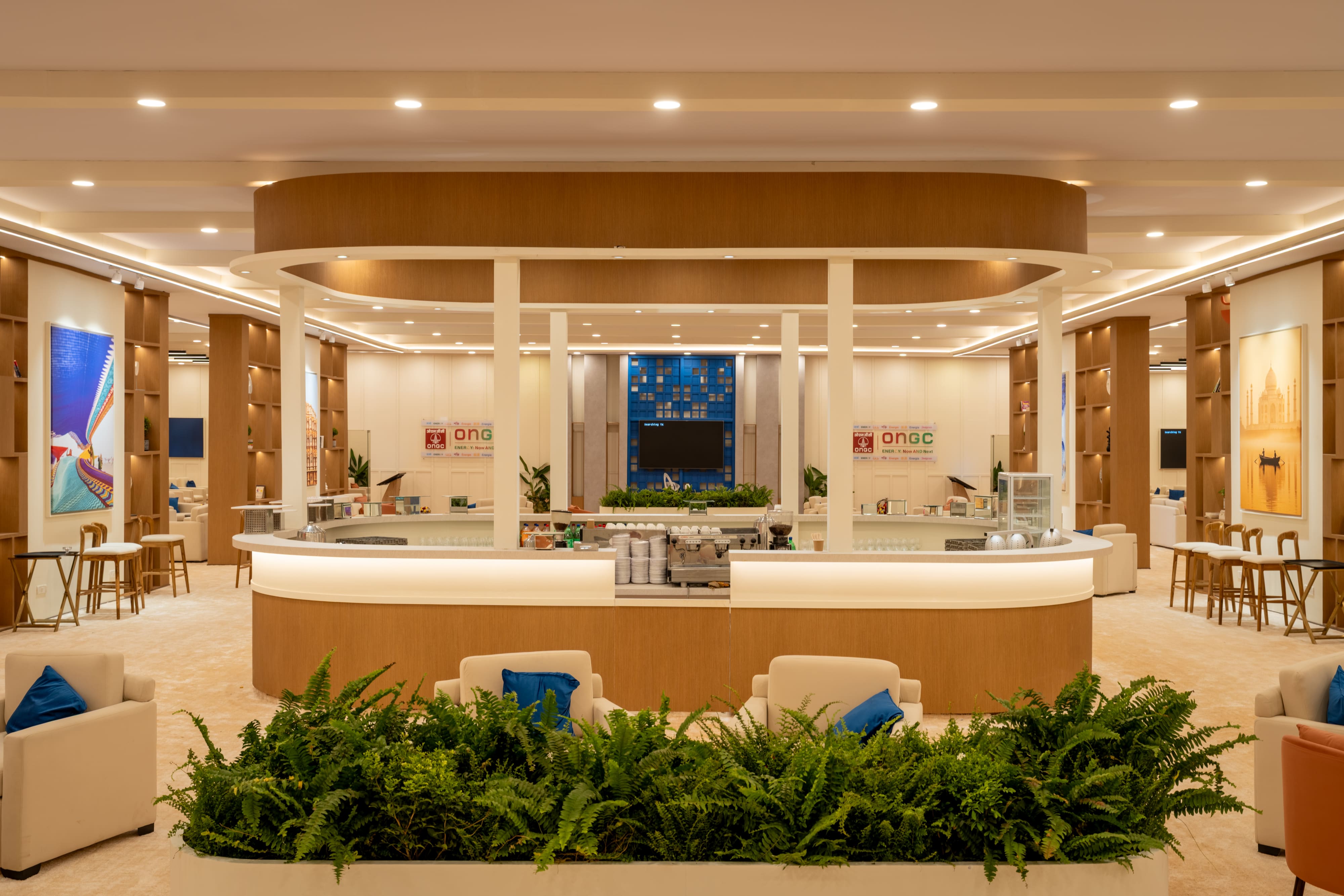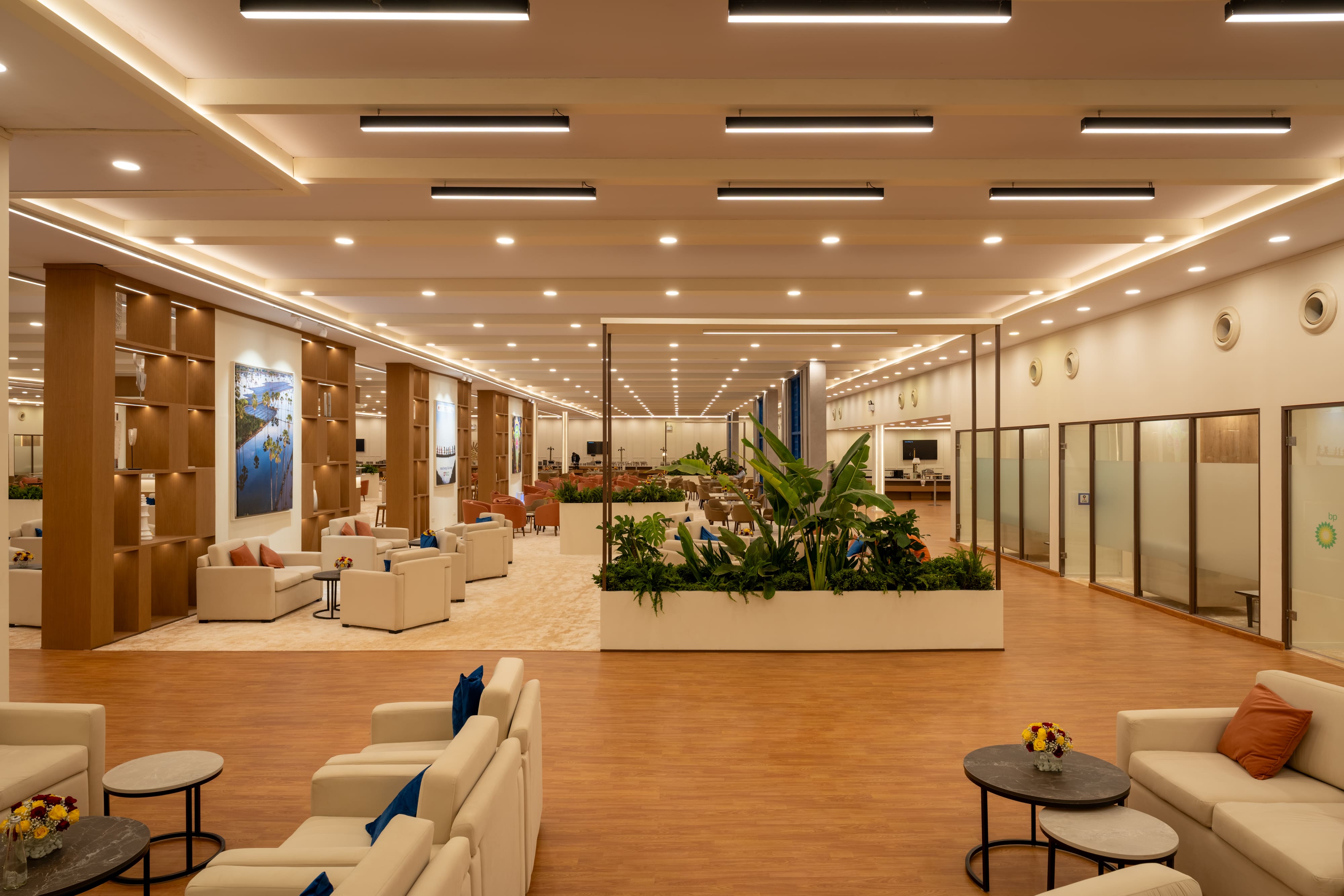 Elevate your brand presence with bespoke lounge environments that balance style and comfort. Featuring integrated
